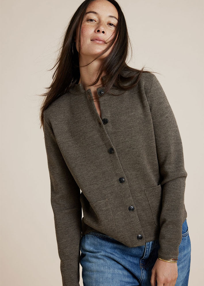 Super anvendelig cardigan, der snildt gør det ud som alternativ til eks. en blazer.