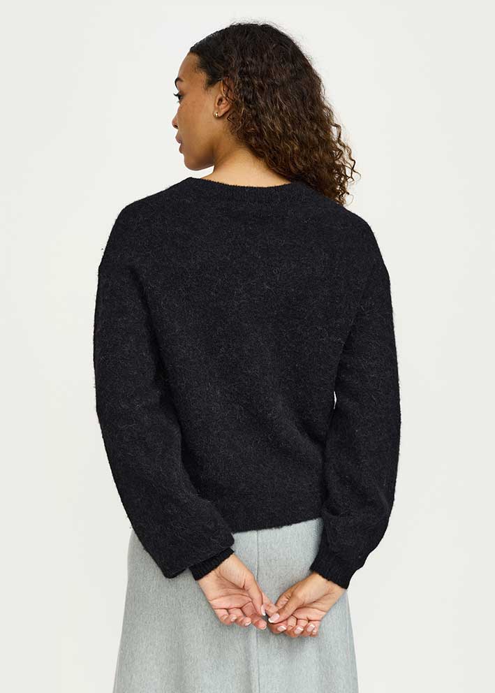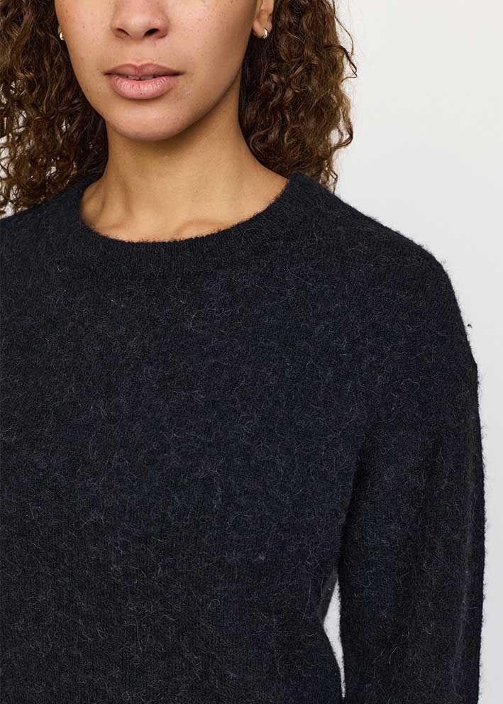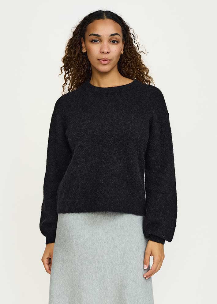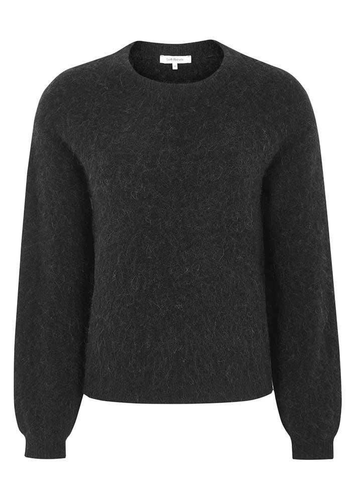 Lækker klassisk sort/meleret Allison sweater fra Soft Rebels, strikket i en dejlig blød kvalitet med uld og alpaca.