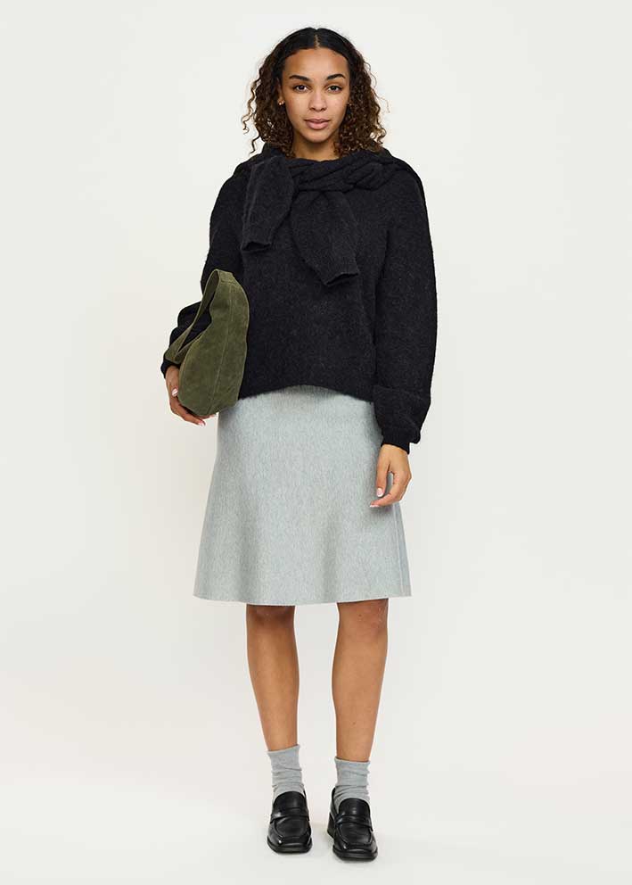 Klassisk gråmeleret Henrietta nederdel fra Soft Rebels, designet med elastiktalje og let vidde. Enkel og sød nederdel, der bare er at must i garderoben.