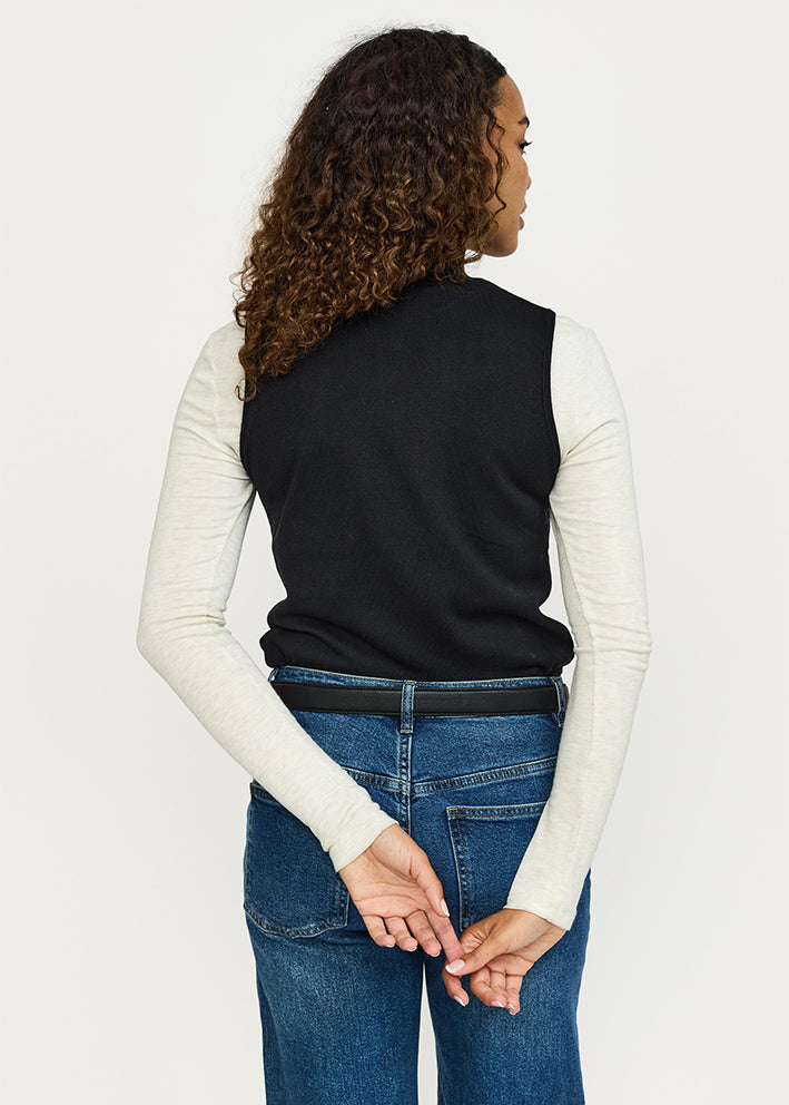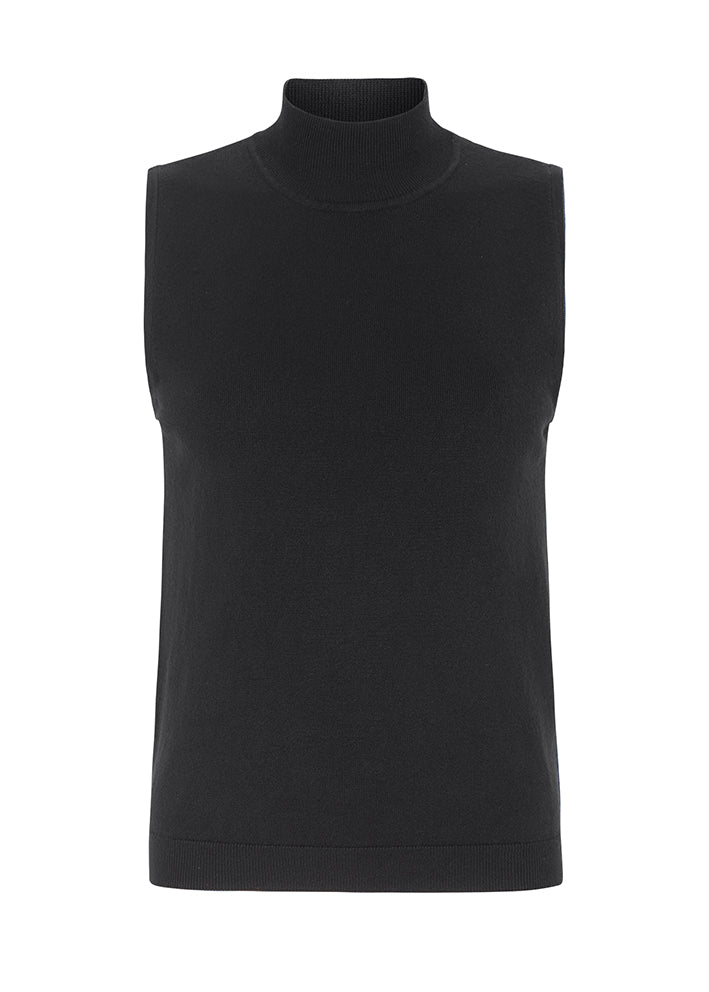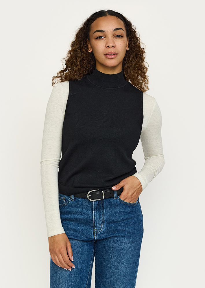 Klassisk sort Marla rullekrave top fra Soft Rebels, finstrikket i en lækker viscosekvalitet. Toppen er designet i normal forholdsvis tætsiddende pasform med turtleneck og uden ærmer.