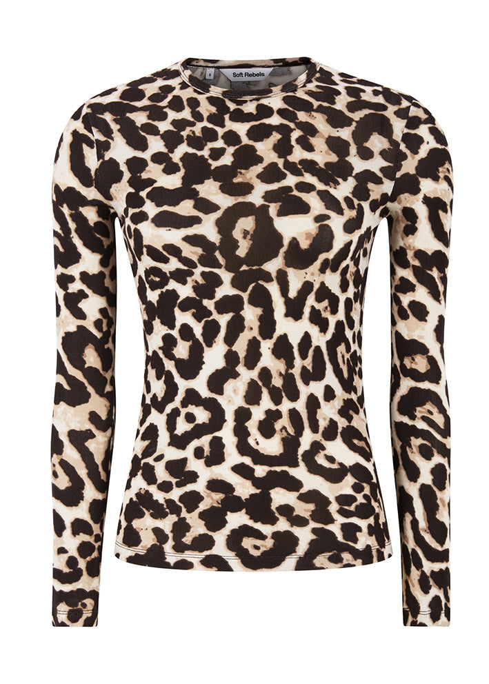 Skøn leopardprintet Roman t-shirt fra Soft Rebels, designet i det blødeste og lækre model med stræk. Den perfekte basis t-shirt med lange ærmer og rund hals.