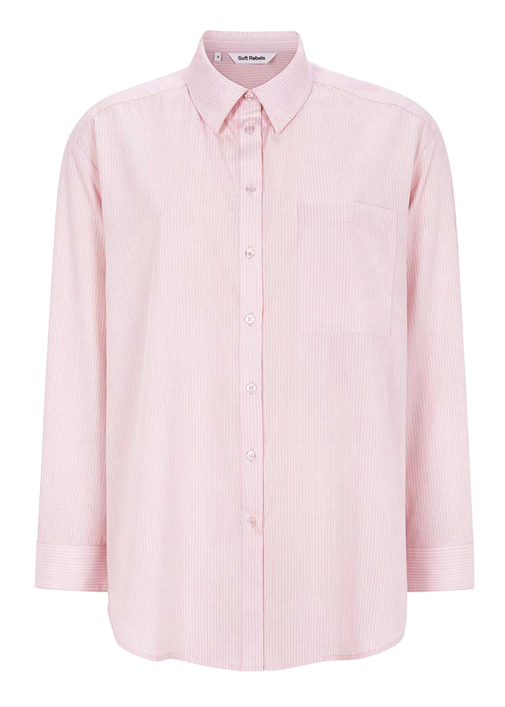 Veronica skjorten fra Soft Rebels er den perfekte kombination af klassisk elegance og moderne stil. Denne smukke skjorte i den bløde rosa farve med diskrete striber er skabt til den moderne kvinde, der værdsætter både komfort og kvalitet.