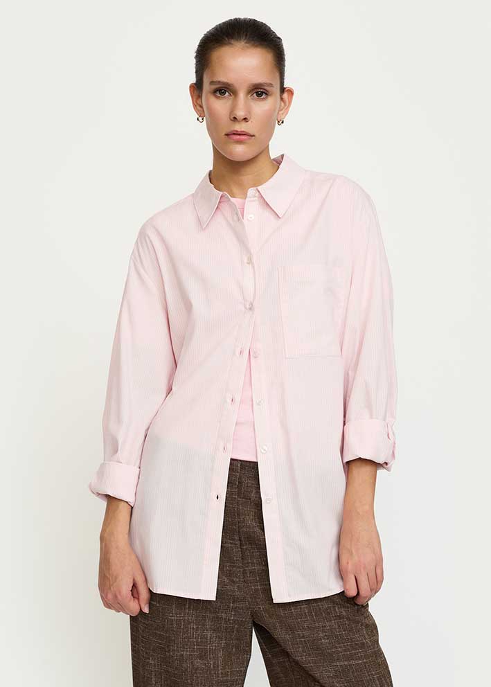 Styling tips: Kombiner Veronica skjorten med dine yndlingsjeans og sneakers for en afslappet weekend-look, eller par den med en skræddersyet buks og blazer til kontoret. Den smukke farve med striber gør den nem at style med både neutrale og farverige tøjdele. Rul ærmerne op for en mere casual look, eller behold dem nede for en poleret stil.