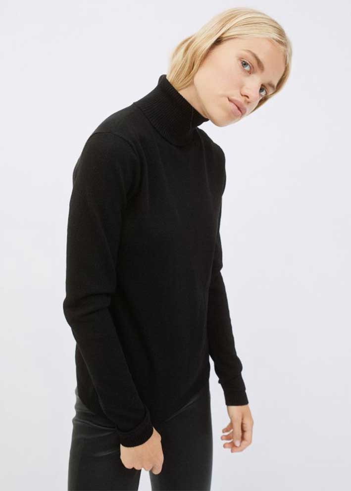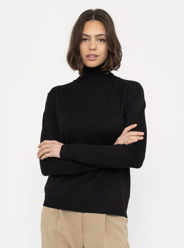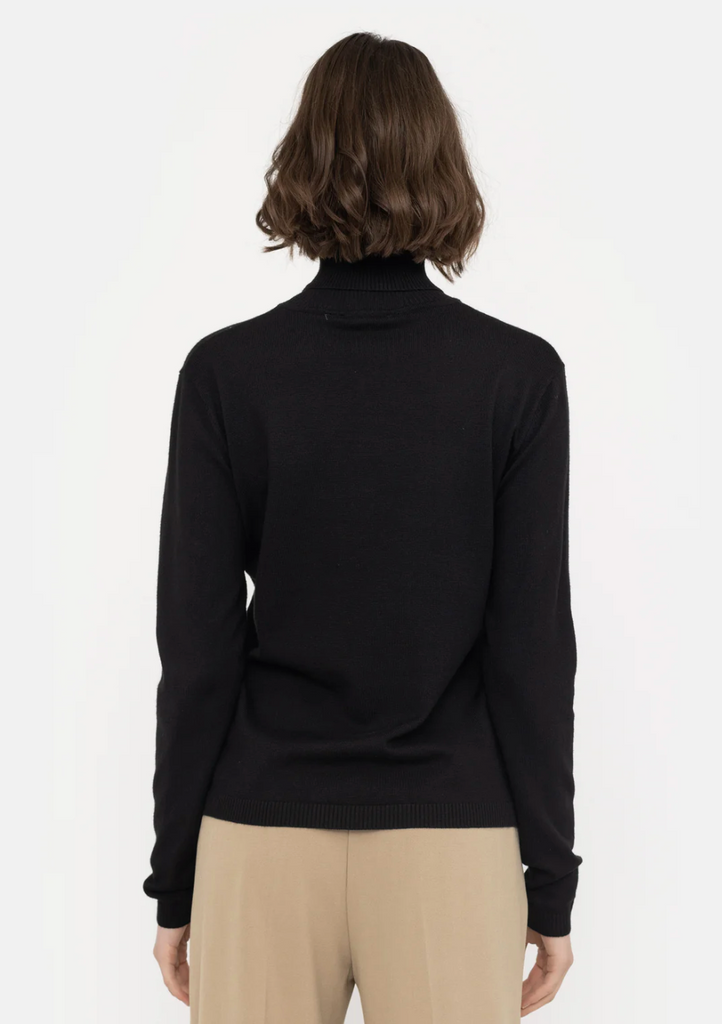 Skøn klassisk sort Marla rullekrave bluse fra Soft Rebels, designet i en normal forholdsvis tætsiddende pasform med lange ærmer og rullekrave.