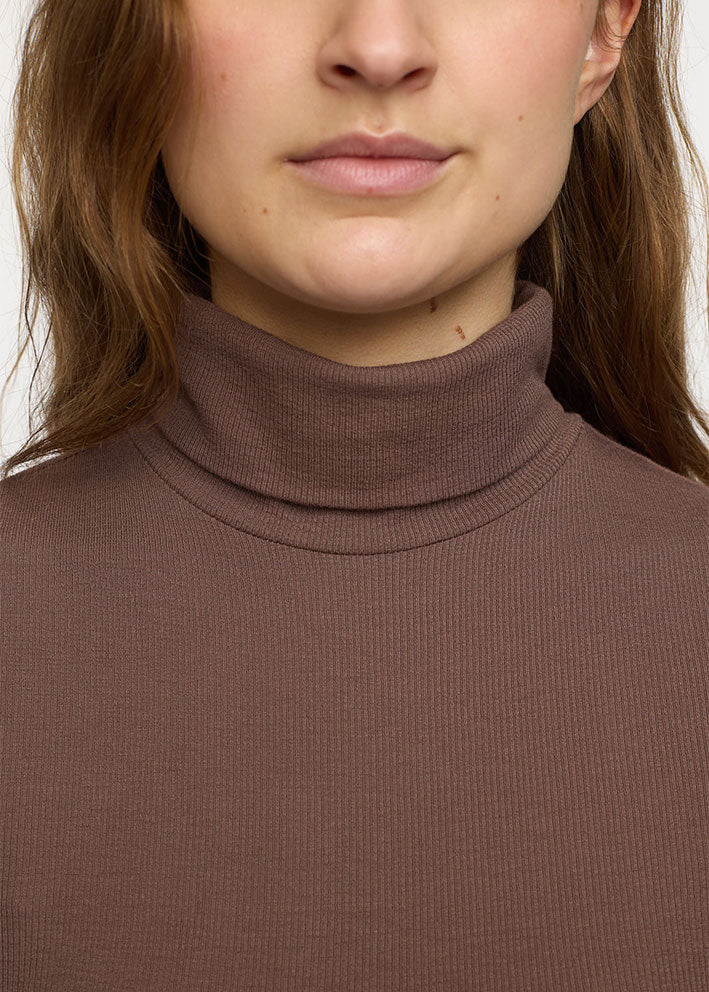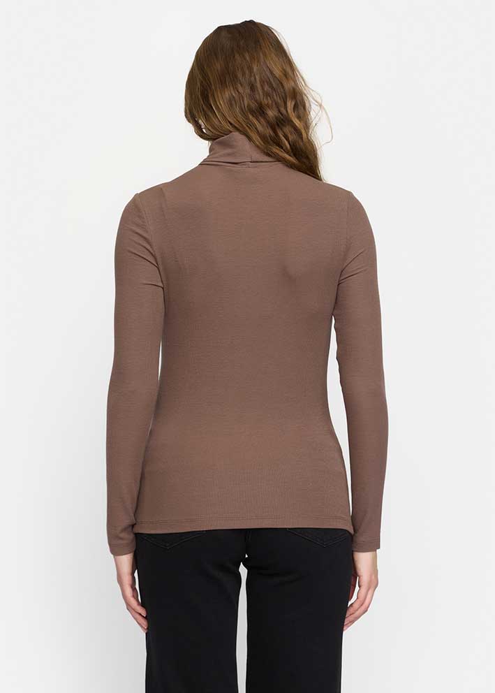 Skøn klassisk Marla rullekrave bluse fra Soft Rebels - her i den nye smukke brune farve. Blusen er designet i normal forholdsvis tætsiddende pasform med lange ærmer og rullekrave.
