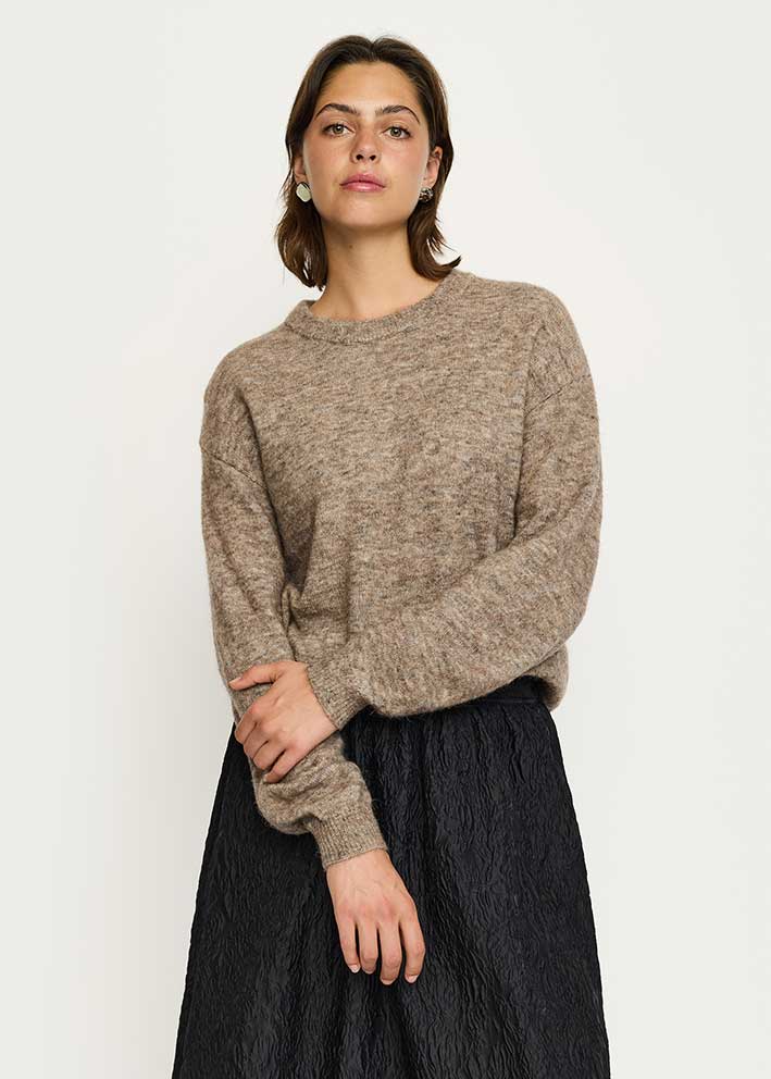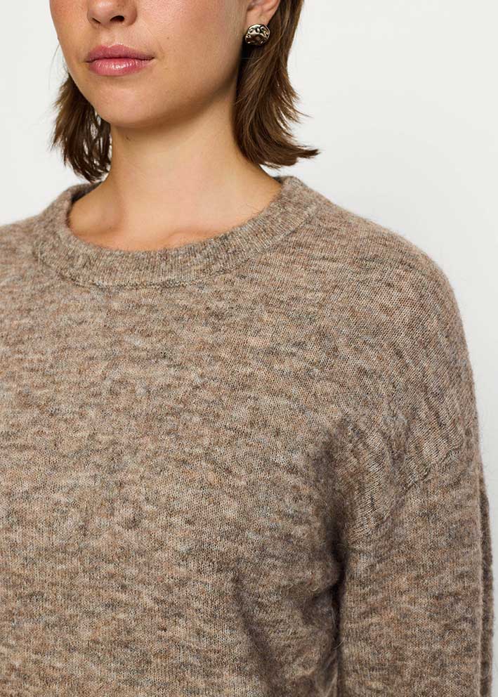 Skøn klassisk gråbrun-meleret Allison sweater fra Soft Rebels, strikket i en lækker blød kvalitet med uld og alpaca.