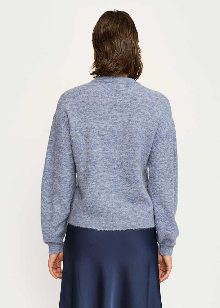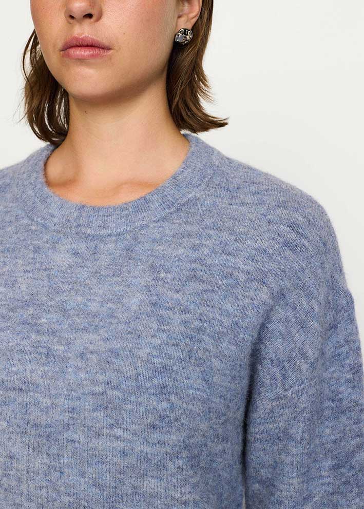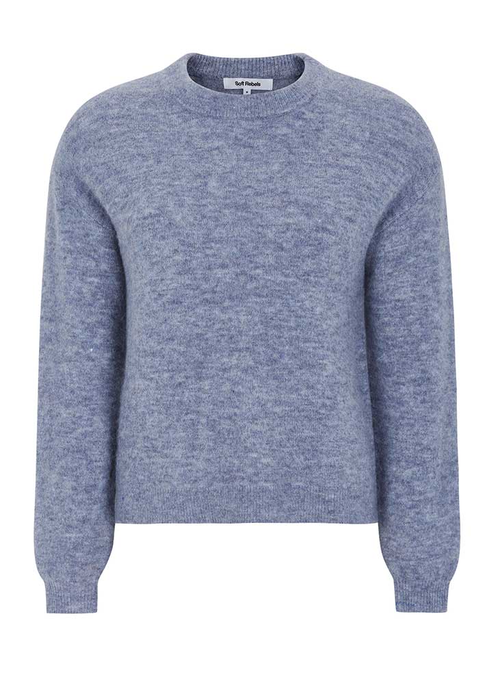 Skøn klassisk gråblå-meleret Allison sweater fra Soft Rebels, strikket i en lækker blød kvalitet med uld og alpaca.