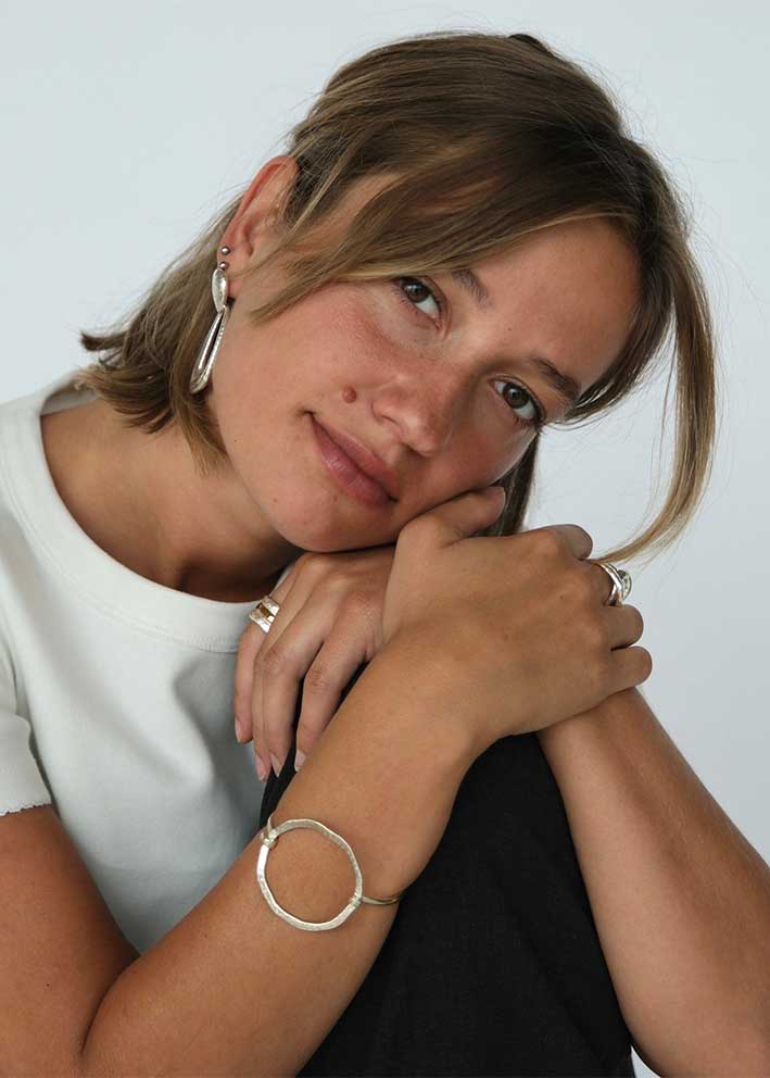 Dette udsøgte armbånd i sterling sølv er designet med en hamret tekstur, der resonerer med det ældgamle og det evige - perfekt til at pryde øjeblikke, der betyder noget.