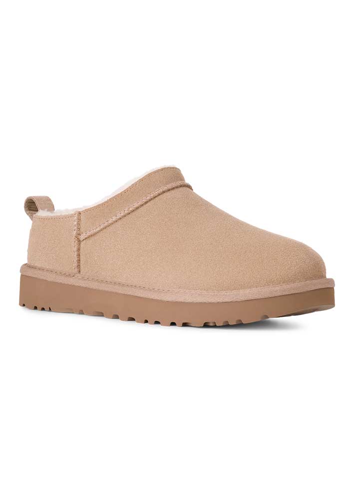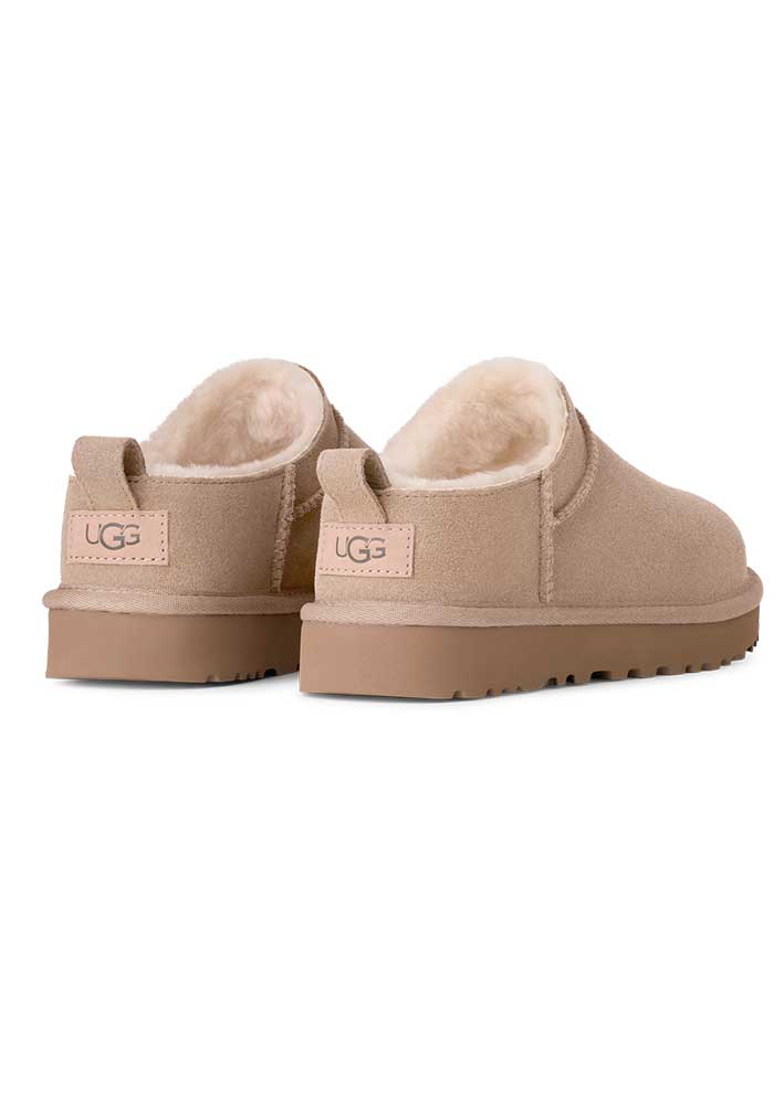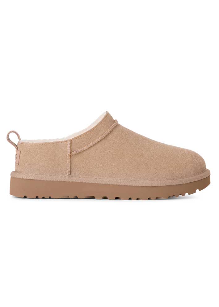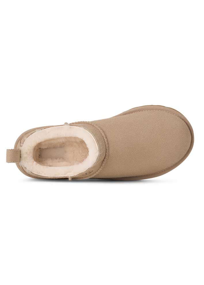 NYHED FRA UGG: Lækre Classic Micro støvler fra UGG, designet i blødt ruskind med lunt rulamsfoer - her i den smukke sandfarve.